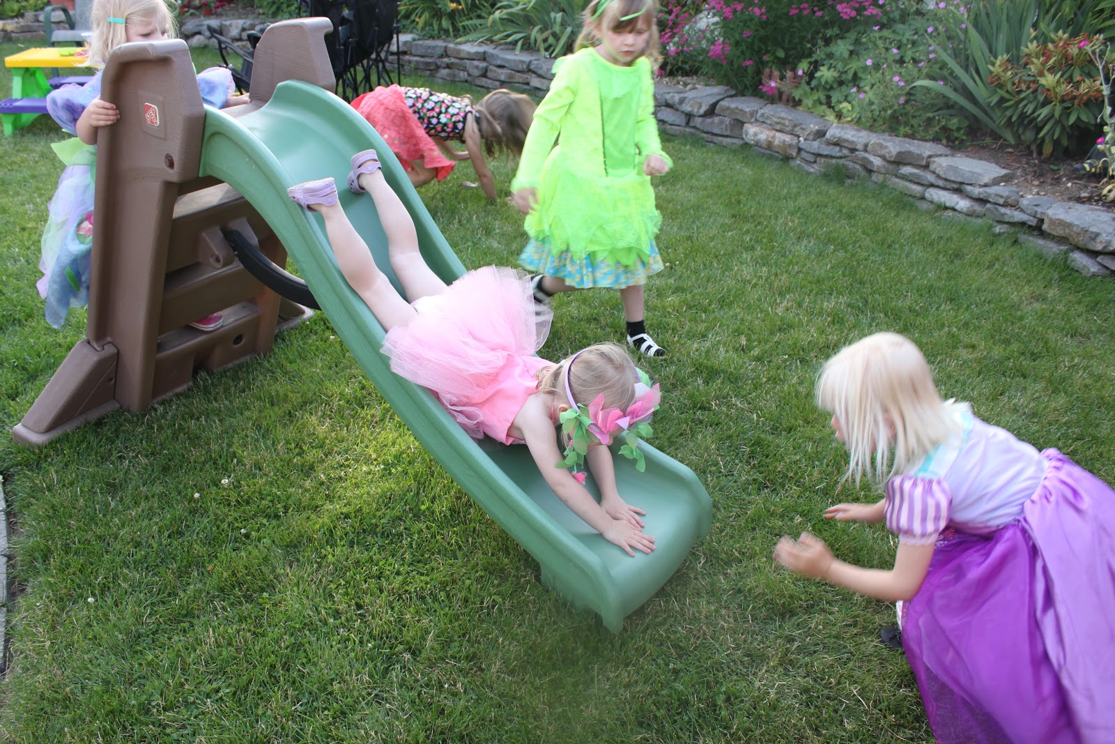 Princesses Paige and Sophie were “taking care of” the little fairies. Doesn’t look to me like Fearless Fairy Christine needs any taking care of, does it? Headfirst down the slide! I ask you? Where does she get it from? What’s that you say Aunt Jean? Me?! NEVER!!!