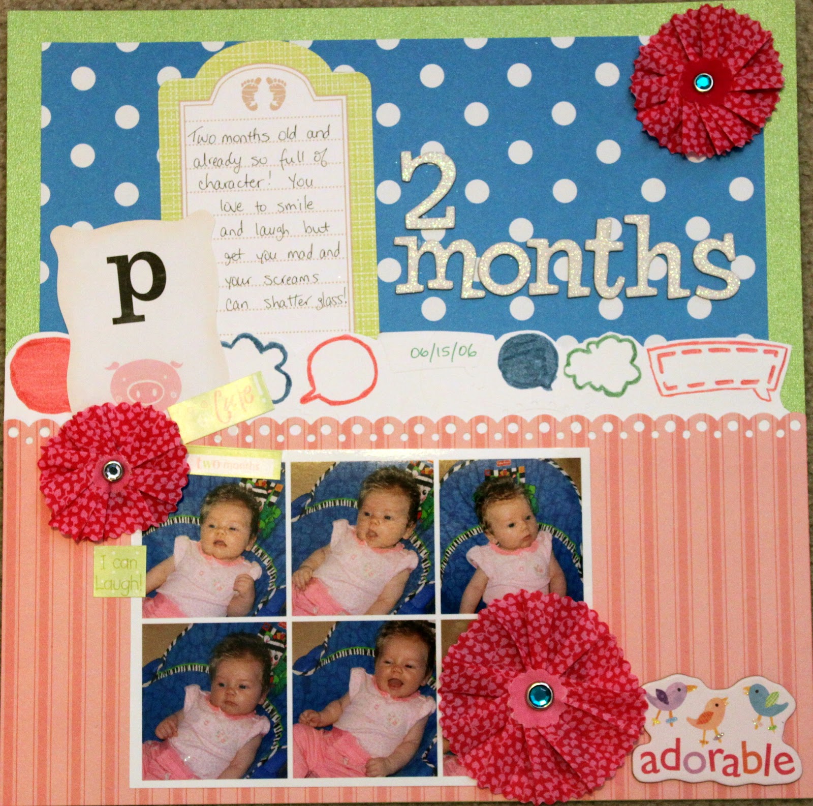 On the flowers, they are just too cute and they work wonderfully with that layout.