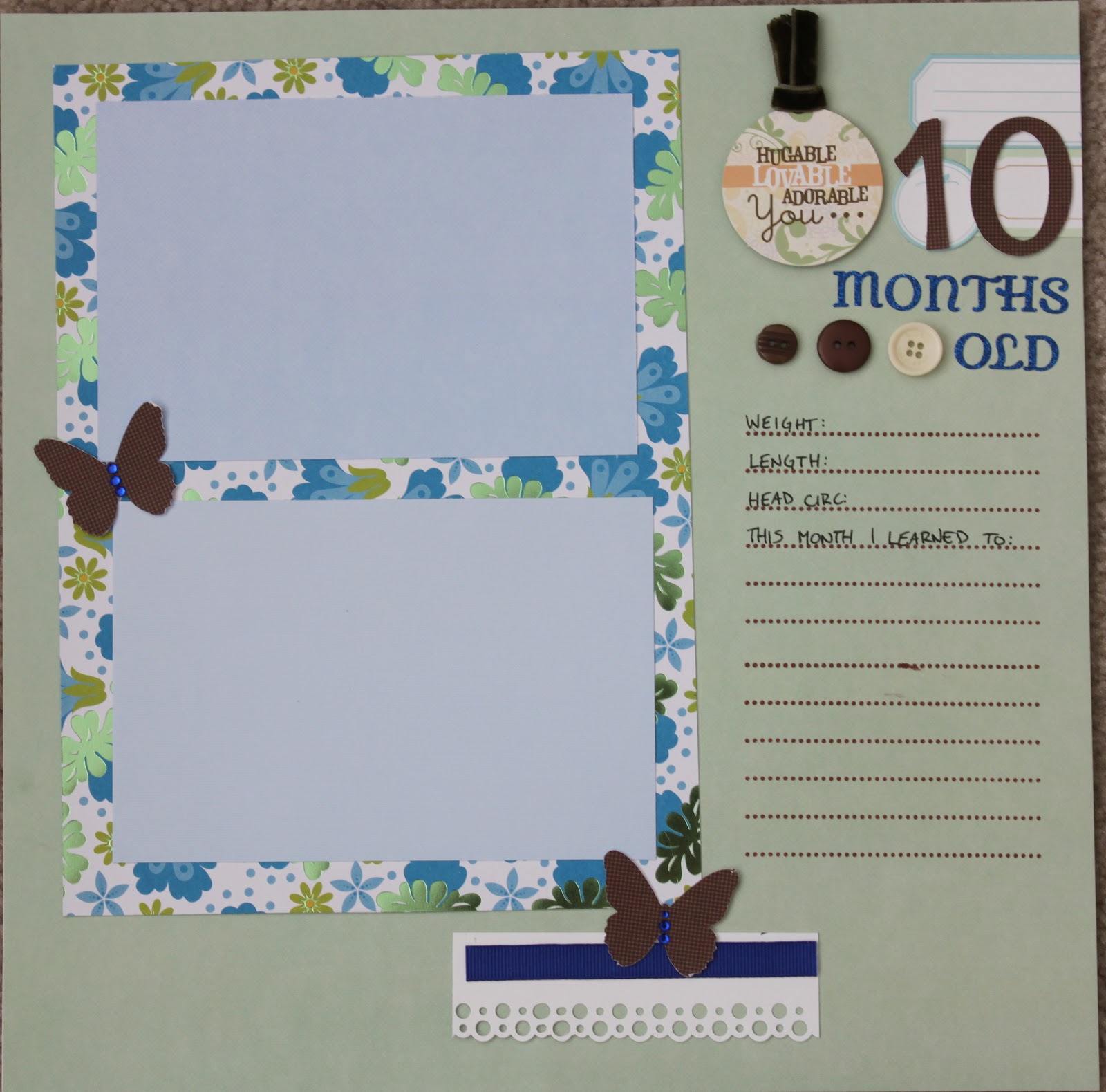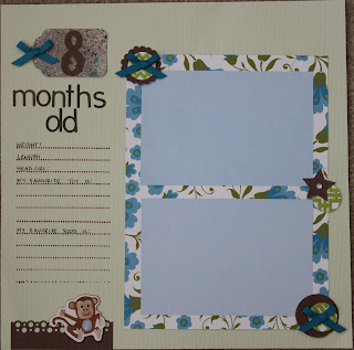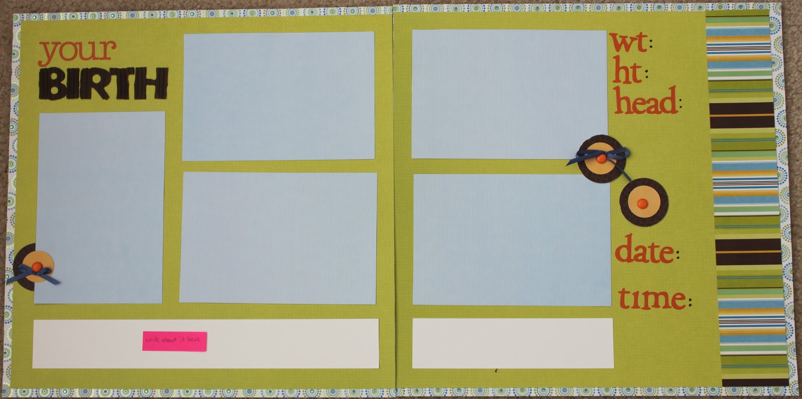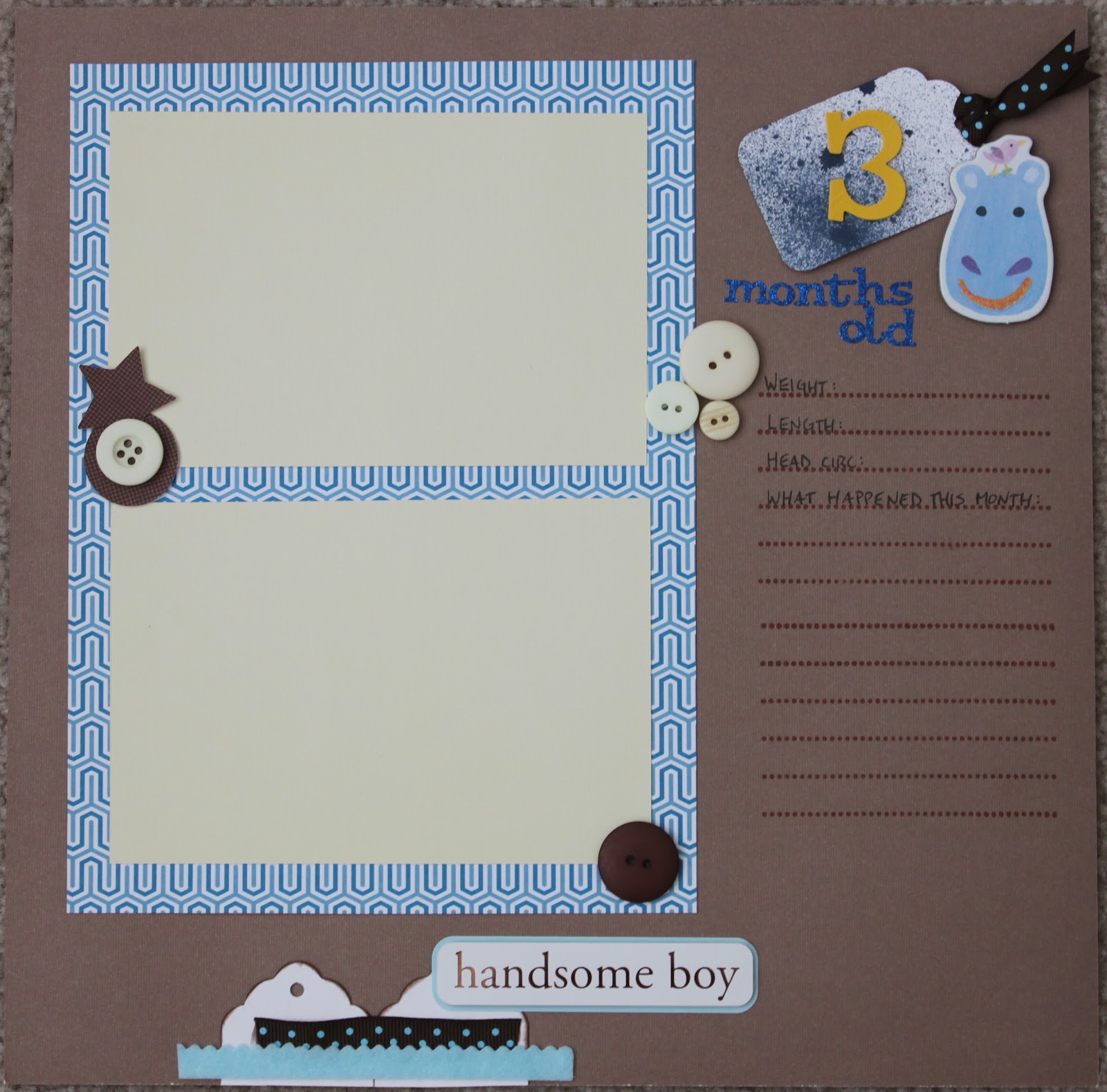 It’s a Baby Scrapbook for Paige’s preschool teacher, Kari. She’s due in September and she’s expecting a boy. Working with blue was a new experience for me to say the least! With 3 girls I am very much in a pink world!!