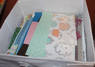 Then I pulled out my scrap drawer. I have recently moved to a larger drawer – not to encourage me to keep more scraps but because I wanted to be able to keep anything that was not a full 12×12 sheet in here. My previous scrap drawer was only able to hold papers that were a maximum of 8″ wide so my paper racks could get a little messy with odd sized papers getting crushed etc. Plus, the larger drawer allows me to dig through everything more easily.