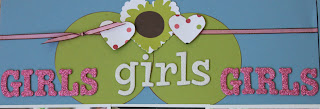 Products used: Cardstock – Bazzill; Patterned Papers – American Craft from Craft fair, Nancy Knitley, Mona Trimenez, Alice Stitchensen, Faye Needleworth and Myrtle O’Seam and from a la Mode, Sorbet; Alphas – AC Thickers Sprinkles Glitter letter stickers in white and Thickers Roller Rink Glitter letter stickers; Punch – MS Bubble Bath; Ribbon – MS piped nylon 3/16″ Camelia Pink.