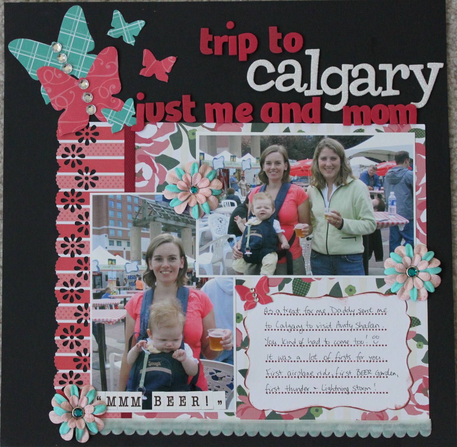 Wow, Alison, you’re blowing me away with all these beautiful LO’s, truly gorgeous!!! Now I’m gonna be singing Motley Crue all day, too, haha! Lovin’ the ornaments you made on the first, and the bling on the second! The third is probably my fave, I just love the colours (and Paige with her beer!), and can’t believe they’re Xmas papers! And the trees on the last are so very cool, I feel like taking out my tree stamp set now! Well, Jason is taking Nolan and Ailis to marble canyon today, hiking and swimming, so I was hoping to get some scrappy time in, but I may have to feed Brenna. Darn kid just doesn’t want to nap like she used to! Thanks for getting caught up on my blog, I was missing you, heehee, and if you ever come up to PG one of these days, you’ll have to make a coffee stop in 100 Mile! Hugs, Rox.