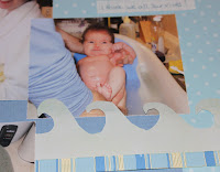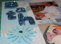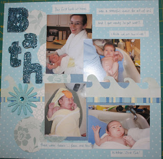 This is for the Design Dollies Colour Challenge which was to use a monochromatic blue scheme. It was actually a tough challenge for me. Having 3 girls I have PILES of pink paper but surprisingly little blue. Go figure! I was a bit worried about it looking too “boy-ish” but I think the flower, the ribbon and the sparkly letters keep it “girly”. The sketch is actually a hybrid of last weeks Design Dollies sketch and last weeks Sketchy Thursday sketch which were eerily similar! I was hoping to finish the LO in time to enter it into both challenges but … life has a way of keeping me from my scrapping!