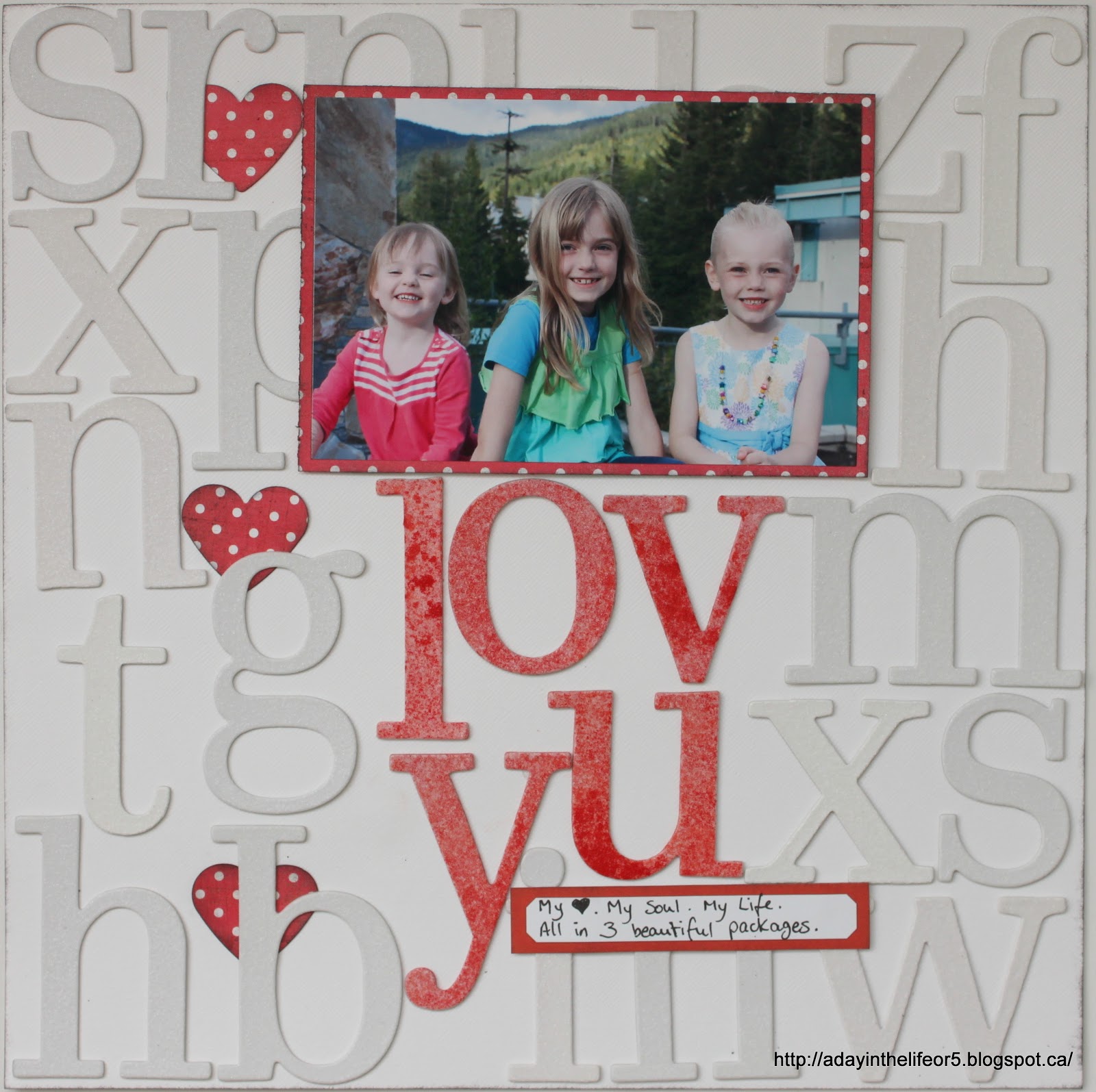 I tucked 3 punched hearts under the letters to represent my 3 daughters.