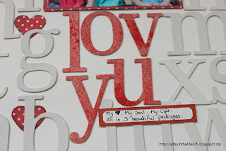 Here’s a closer look at the title and journalling tag. I used an Elle’s Studio tag – the journalling reads: “My {heart}. My soul. My Life. All in 3 beautiful packages.”