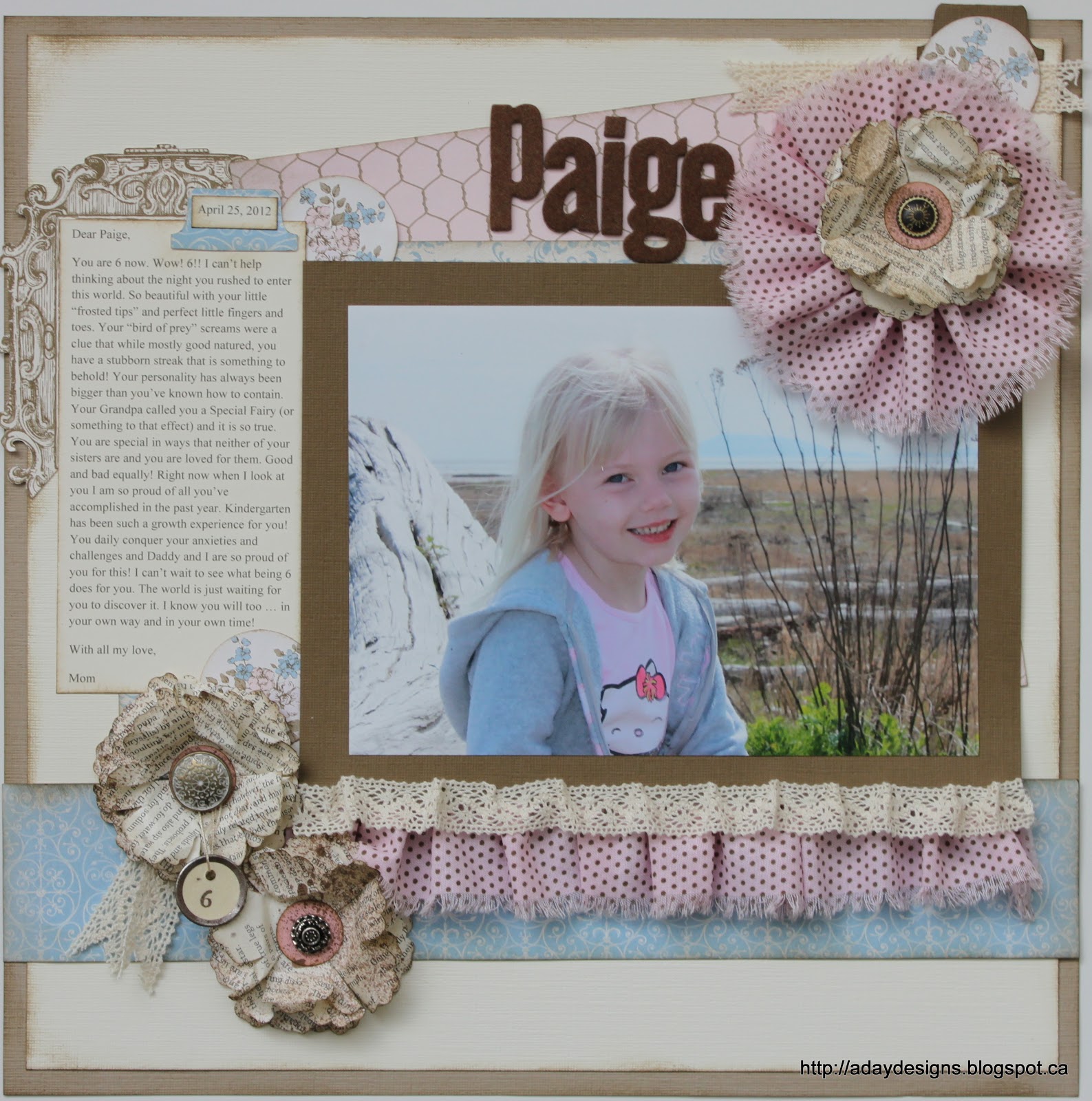 Love the dimension fabric flowers, layer etc gives a page. Thank you