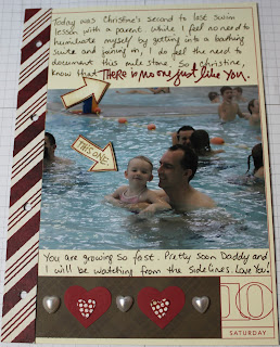 The journalling talks about how next Saturday is going to be Christine’s last swimming lesson in the parent and tot program. (When we sign them up in the spring, she will be 3 and therefore on her own for the first time.) Greg asked if I wanted to do the lesson with her but … me in a swim suit? NOT PRETTY!!! so I decided to take some pictures of Greg and Christine instead. She’s growing up so fast!!