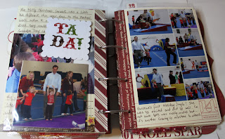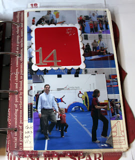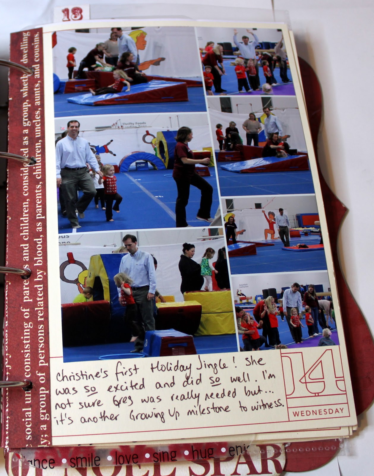 Above is the Day 14 cover page which is a CD protector page cut down. In the bottom pocket I included two pictures back to back. Christine was practicing her “Hup, two, three, fours” all around the house for days!!