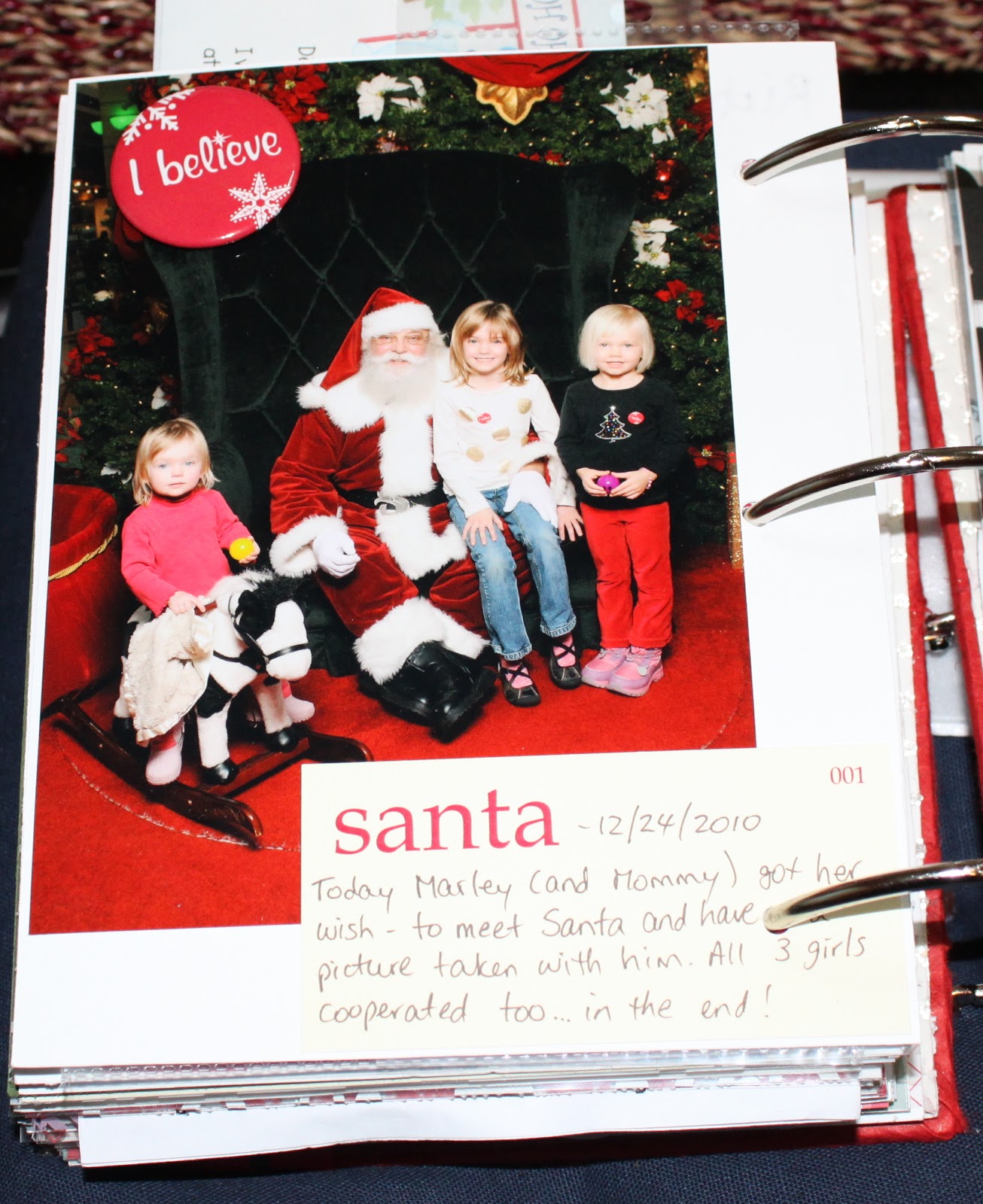 It fit well between the days as the story of Seeing Santa spanned the two days. Marley really, really wanted to see Santa but we couldn’t stay on the 23rd and the line had already been closed when we tried to go back that night so I decided to try to get in to see him first thing on the 24th. And we experienced a Christmas Miracle of sorts! I managed to get my coveted picture (that I’ve missed for the past few years) of all 3 girls with Santa. And Paige even smiled!! I love that girl!