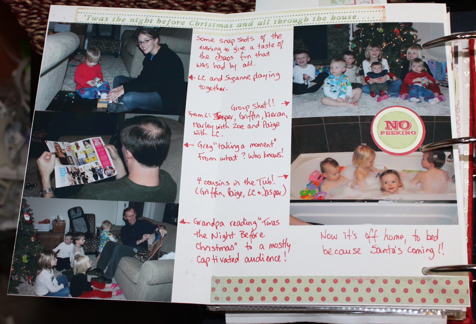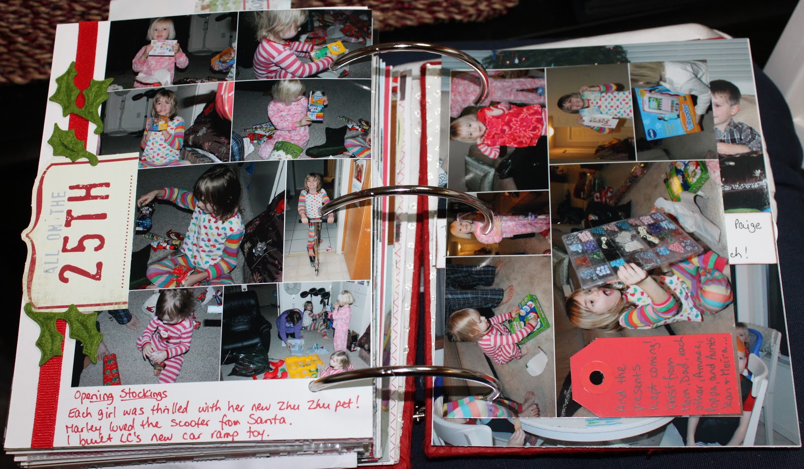 This is the back of the main page. It’s a collage of opening up the stockings and trying out the new toys.