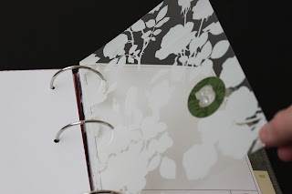 When I took these pictures I hadn’t adhered any patterned paper to the daily pages (I used the 6 x 8 digital templates from Ali Edwards) and some of the transparency papers still hadn’t been hole punched. That’s why you see quite a bit of “stuff” hanging out the right side of the book. Now that it’s all done, you don’t see that. I will attempt to post more pictures tomorrow to show that.