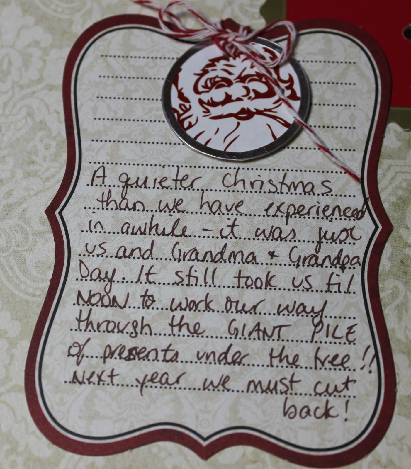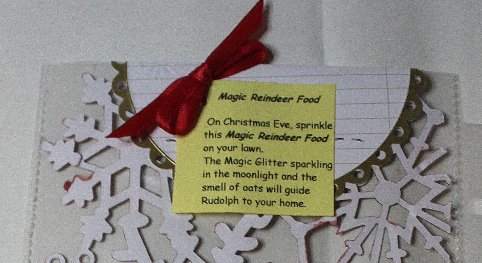 On the back of the cover page I added the tag from the Magic Reindeer Food we sprinkled on the lawn after everyone had left. Marley made it one year in Preschool and ever since then it’s been a requirement around here!