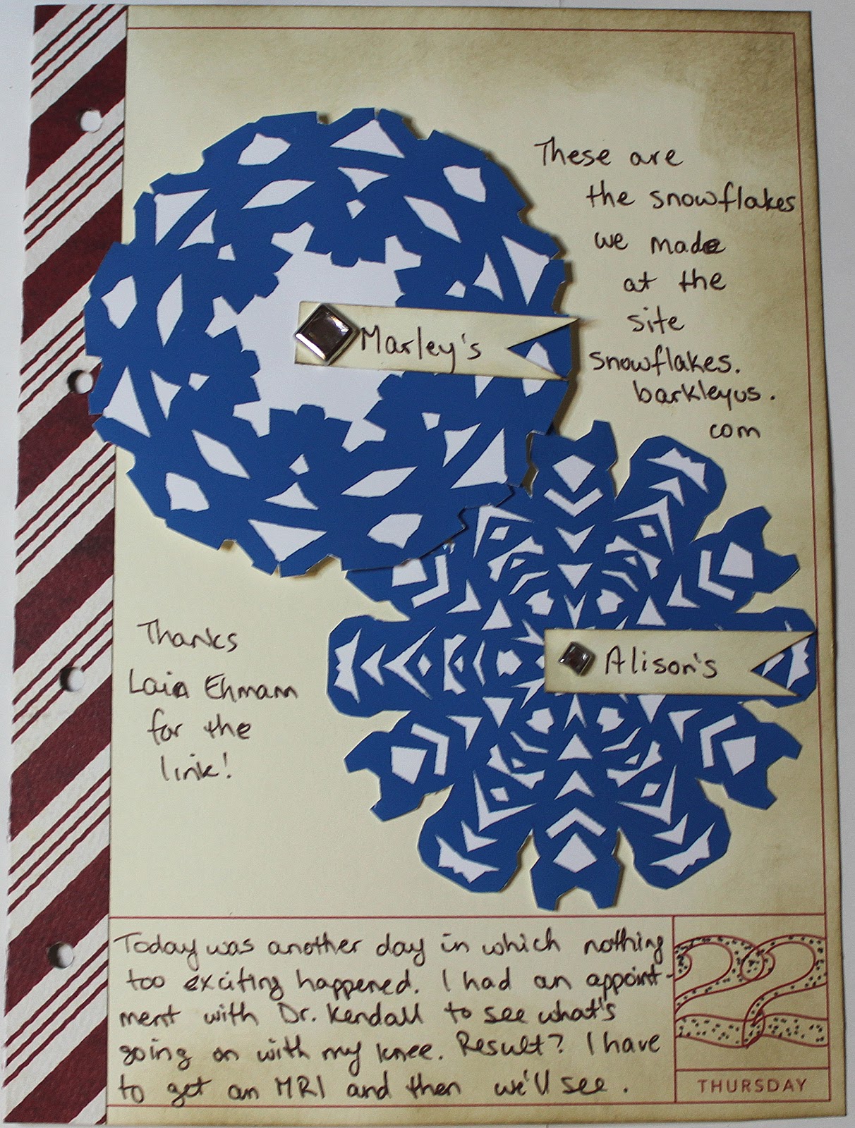 Another of those days where I took no pictures and there was no real “story to tell”. So I printed off some virtual snowflakes the girls and I had made earlier in the week, added a little journalling about what actually happened on the 22nd and called it done.