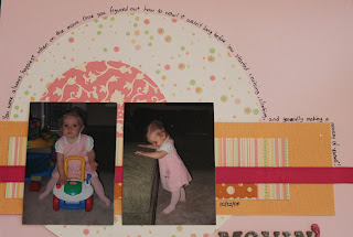 Marley started walking at about 11.5 months but before that she was ALWAYS moving. Once she started to crawl I couldn’t get her to stay in one place! Here she is at about 8 months old cruising on the furniture.