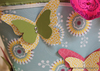 Paige got to pick the paper but had no idea what it was for. She chose a paper from Floral District and I picked out some coordinating papers to make the butterflies. I made them using my Beautiful Butterflies Die for the Big Shot. Here’s a close up so you can see the layers and the added rhinestones.