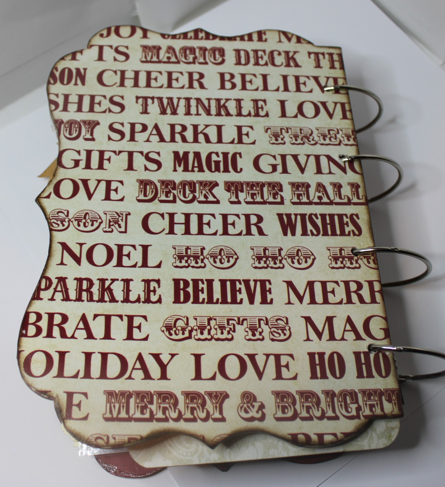 Day 19: Kind of really love how this turned out. I made a couple boo boos (taped it to the wrong side so had ripped paper to hide) but I love how the tags and the ribbon came together to complete this page.