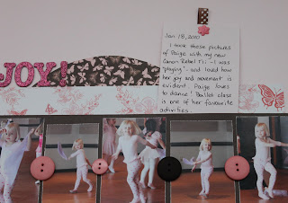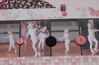 Shortly after buying my new Canon Rebel T1i, Paige had her first ballet class of the new year so I took my camera along and “played” while watching her. I had printed off a few pictures intending to use them on my Project 12 January 2010 layout but they got left on the cutting room table (so to speak!) Greg had picked one up and said how cute it was and I knew I wanted to use them but the question was how? Then Sketchy Thursday’s latest sketch popped into my head and the rest was easy!