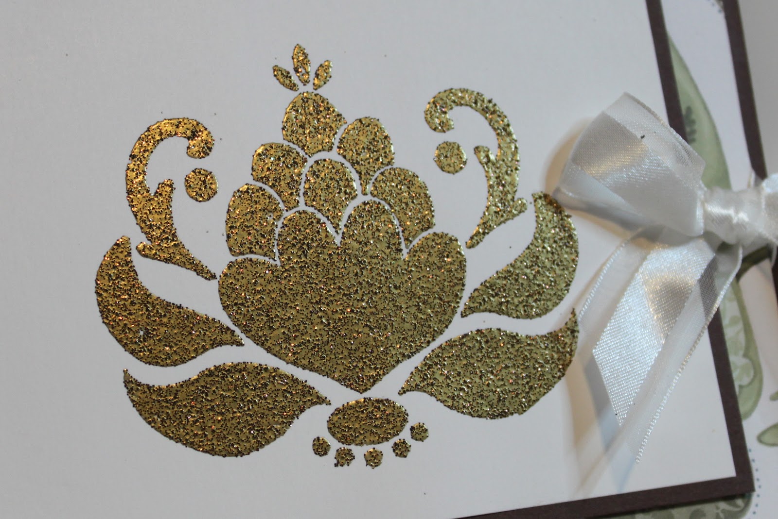 Isn’t this gorgeous?! I can say that without any false pride as all I did was follow the instructions Kari laid out. And very carefully too I might add. I’d never embossed before and I gotta tell say … I’m hooked! Watching the embossing powder melt and give you this …