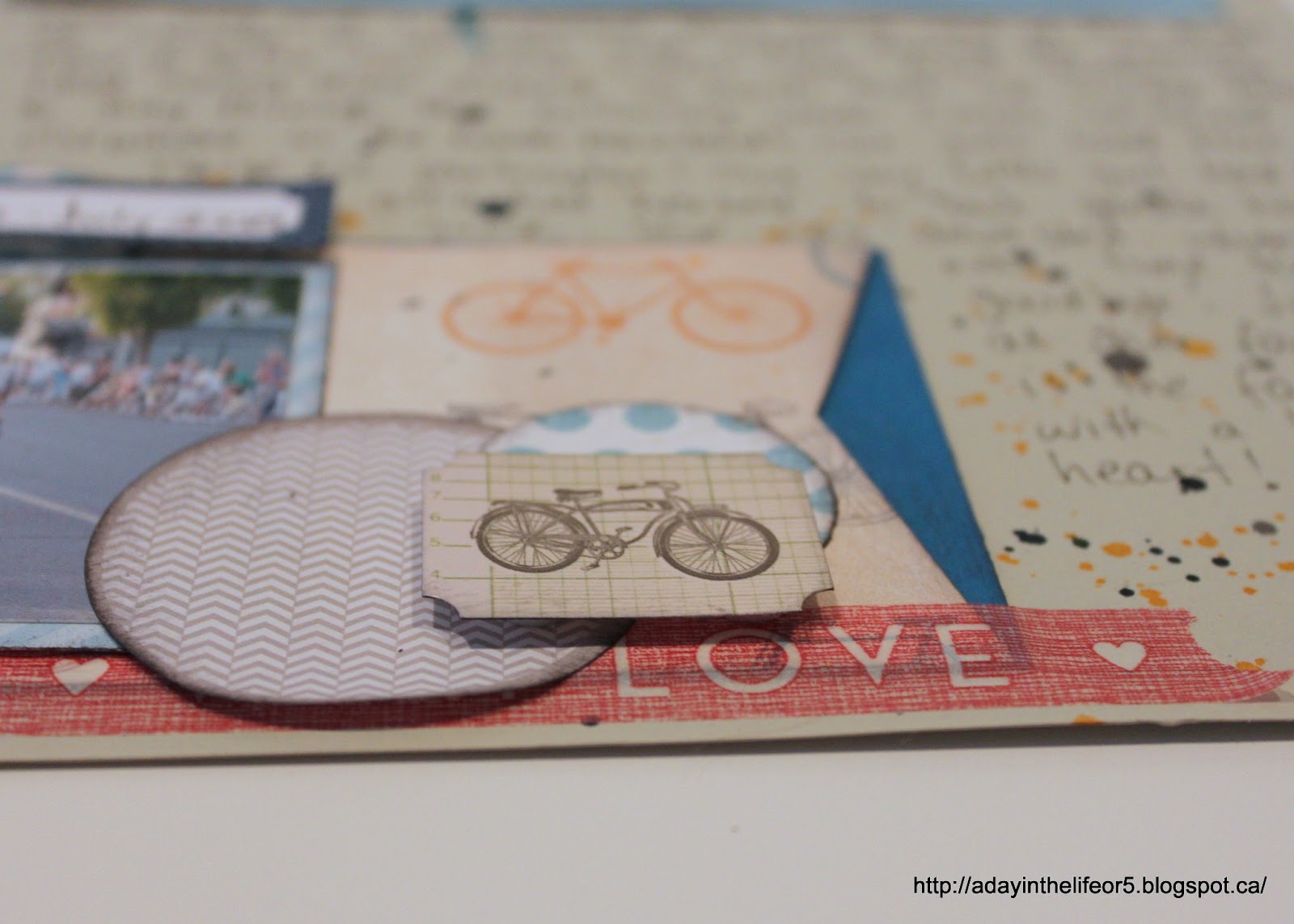 I am totally trying to stash bust so figured multiple photo mats and journaling tags were needed here! The bicycle paper may be a bit “themey” but this option was better than the pink Studio Calico paper I also found in my stash!