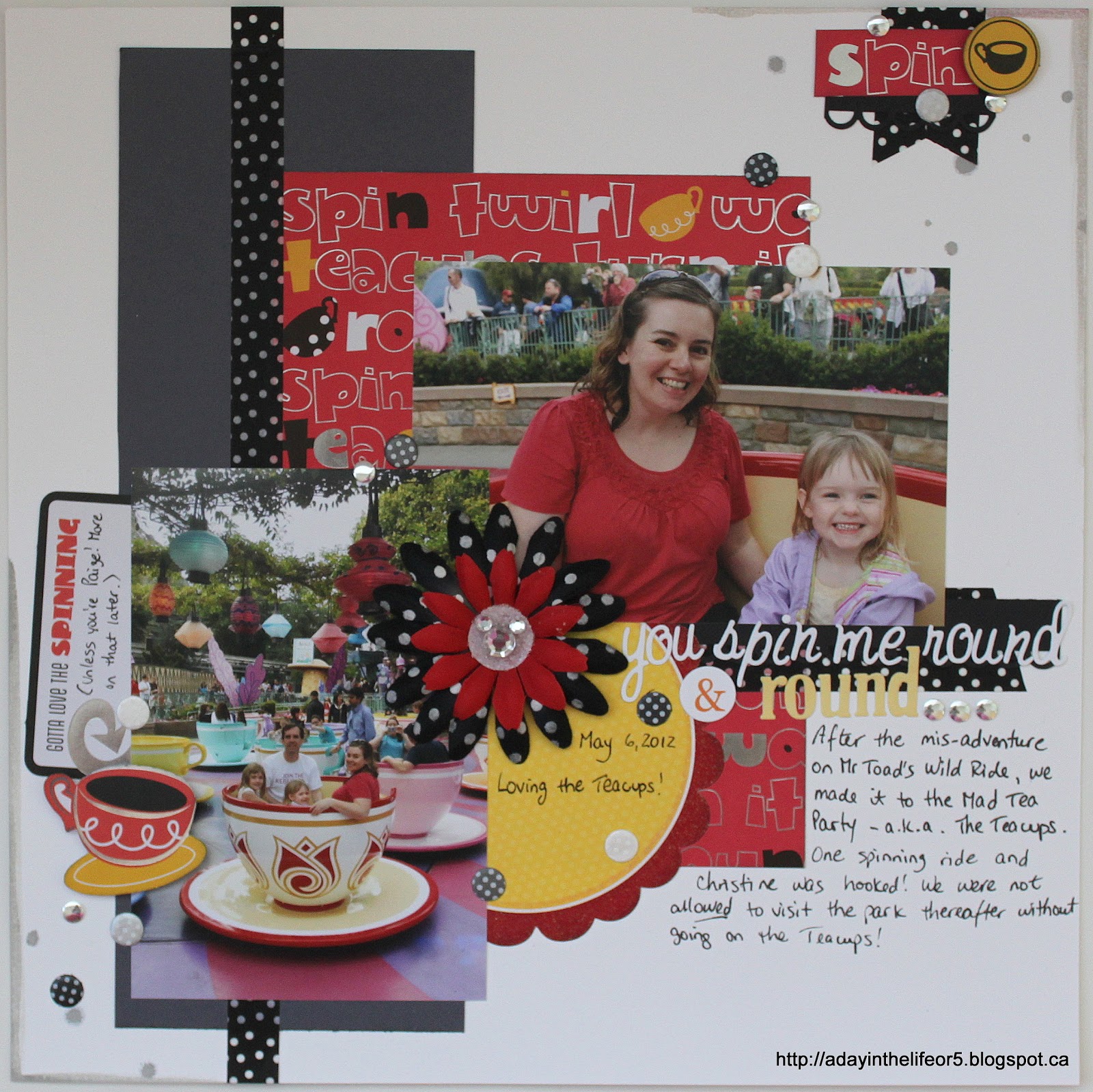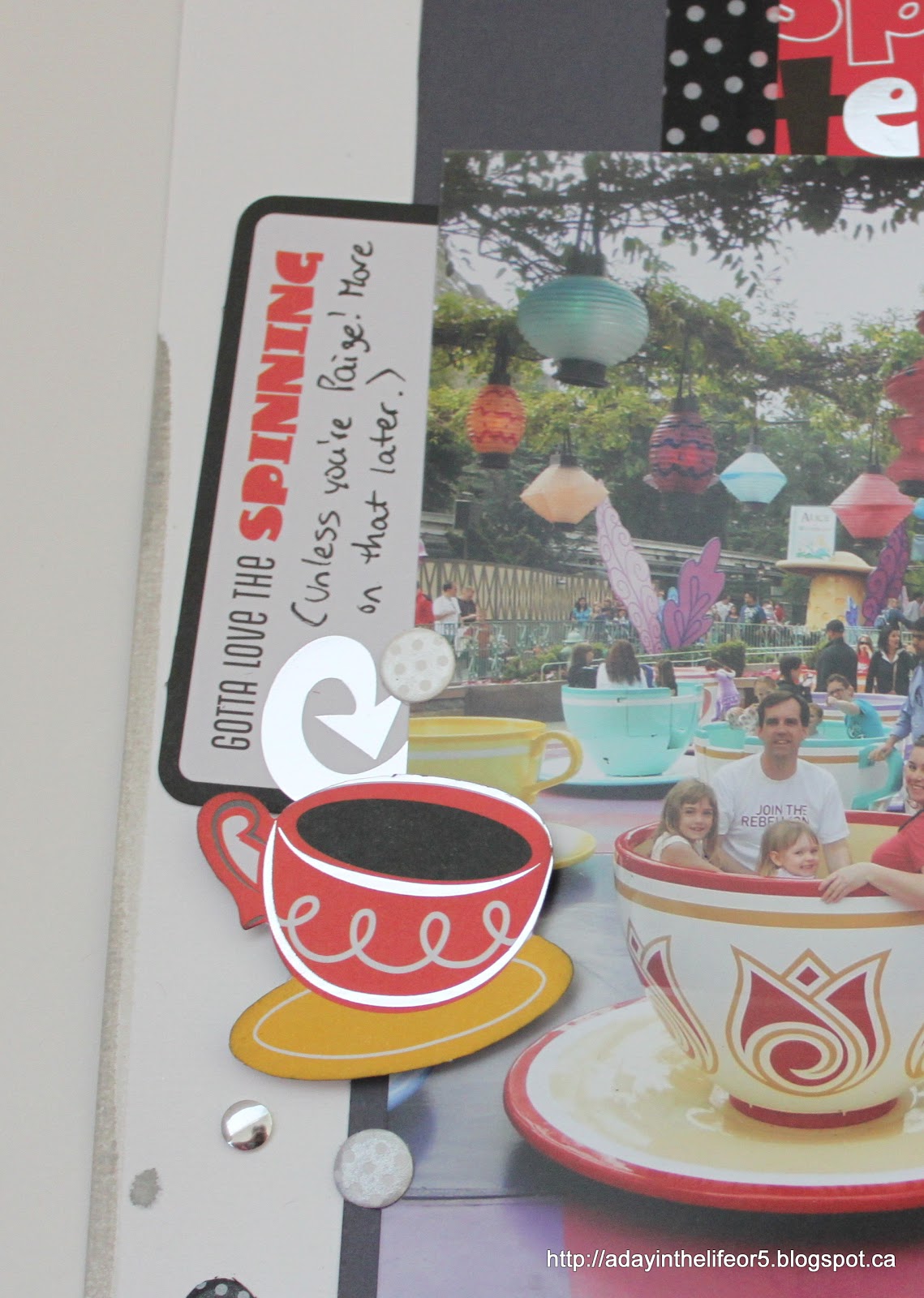 I’m still working on ALL those Disney pictures I had printed last month. This time I’m telling the story of how Christine fell in love with the Teacups ride and EVERY time we entered the Park and/or Fantasyland we HAD to go on the Teacups.