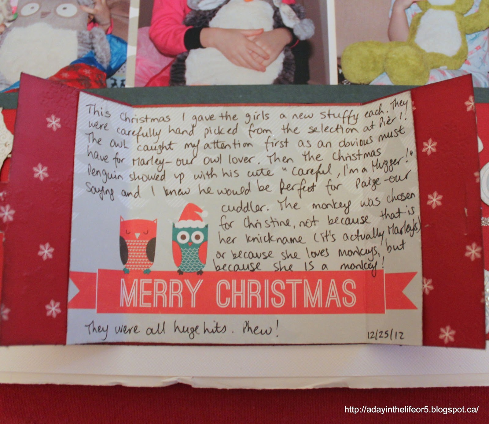 For today’s prompt, Lain asked me to make a page with a hidden element. I don’t do this ALL the time but often enough that I was ready with several options at hand. And then we celebrated Christmas (I was doing these layouts for Lain in December) and each of us was given a special gift from Greg’s Mom. They all came in pretty unique gift card envelopes which I immediately hoarded away for future use! Don’t we all do this? No? It’s just me then? Okay, I can live with that!!