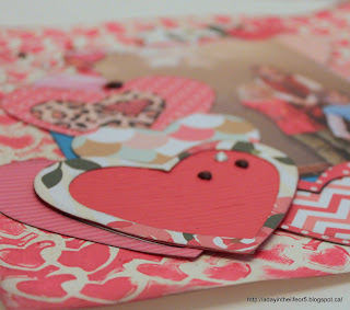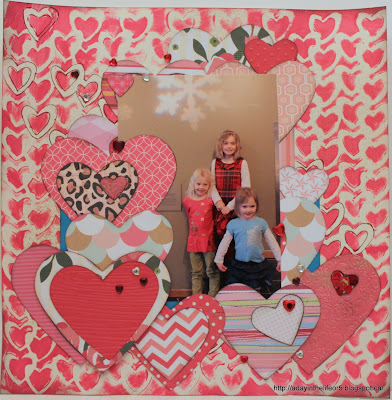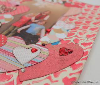 When it came time to lay everything out I kind of went a little heart crazy! I wanted to surround the picture with the hearts – over, under, beside, you name it. And I wanted to try not to have any hearts with the same pattern next to each other.