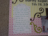 I’ve just started scrapping an album for Marley and given that it can take me a week to do one page, it could take me a heck of a long time to document her 5 (almost 6) years of life!! Here’s hoping I get it done to my satisfaction in a timely manner. We need our dining room table occasionally!!
