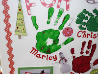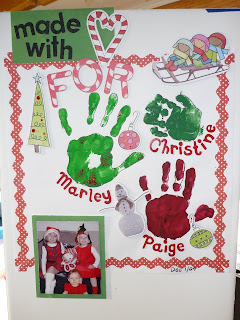 I decided to put the girls’ hand prints onto the back to commemorate them as they are now so years from now we’ll remember just how little they once were. Sometimes that’s hard to remember, especially when I have to buy them new winter boots and they look so BIG!! I swear, Marley’s looked big enough to fit me!!! Sigh.