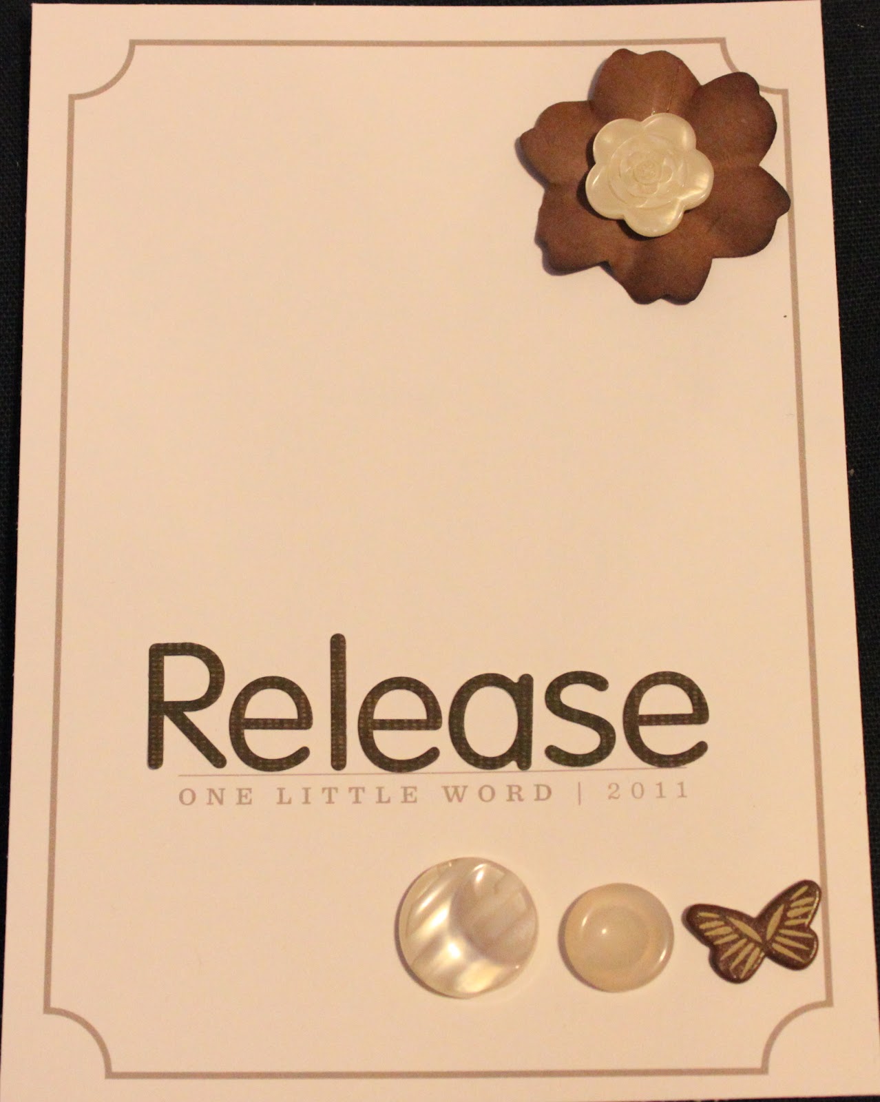 As you may know, I’ve been struggling with feelings of unhappiness for quite some time now. I started seeing a therapist in the fall and she has been helping me understand some of my natures but there’s still a lot to be accomplished. One thing that has emerged is that I am holding on to a lot of harmful emotions so I felt that a word like ‘release’ is perfect as a daily reminder to let them go. Let go of the frustrations, the resentment, the fear, and especially, the anger. I don’t see the need to go into the reasons behind the fact that I have all these pent up emotions right now, suffice it to say that I am hopeful that 2011 is the year I free myself.