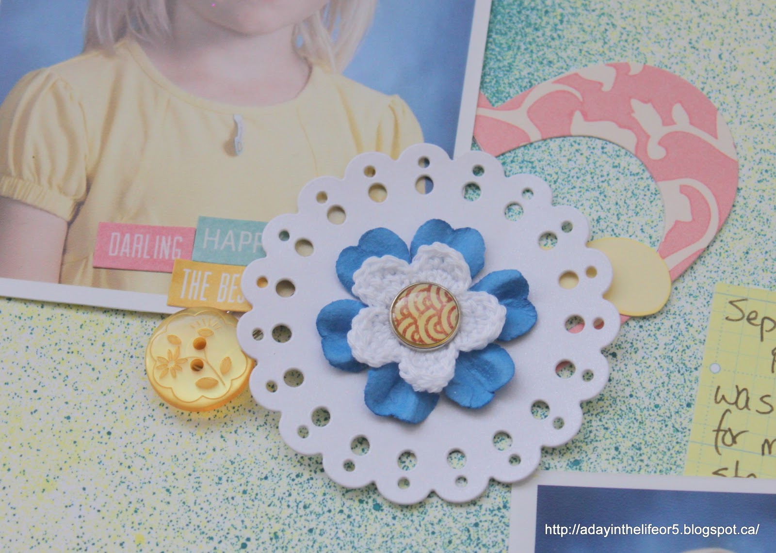So very cute! Love the colors, flowers & doilies!
