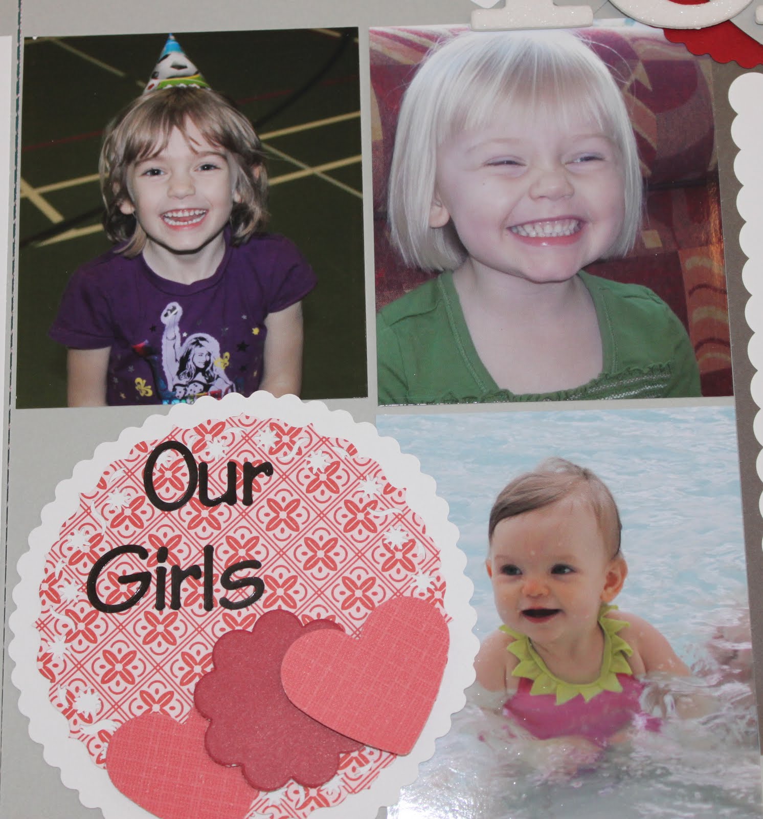 The Olympics aside (I deal with THAT below), the biggest event in February for our household is the birthday of our eldest, Marley. This year she turned 6 and I thought this warranted an entire page just for her. Then to continue my idea of highlighting our girls each month, the second page is close ups of them.