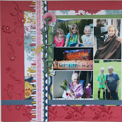 I’m back with another layout for my Project 12 album. July is almost finished which led me to start thinking about this project, which then led to realize I’d neglected to do my June 2012 layout. Using another sketch from Pagemaps and the Patio Party DSP collection I came up with this.