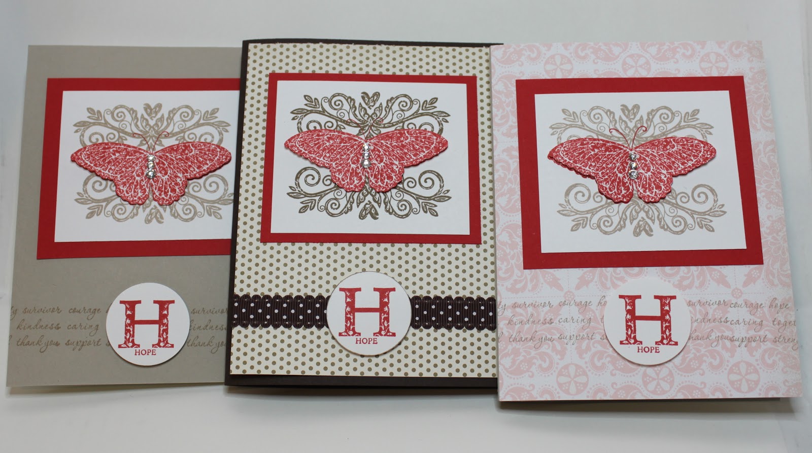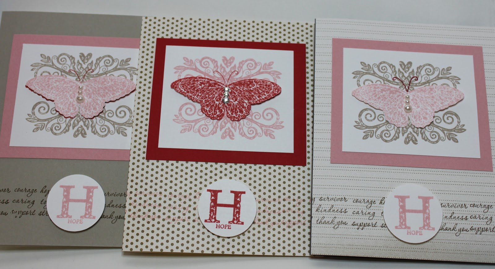 I also want to sell some cards I’ve made with a stamp set Stampin’ Up! released in the summer to raise money for Breast Cancer Research. Here are some pictures of them. Once I figure out how to do this (paypal? etsy store? eBay?) I’ll let you know. If you’re interested, please leave me a comment.