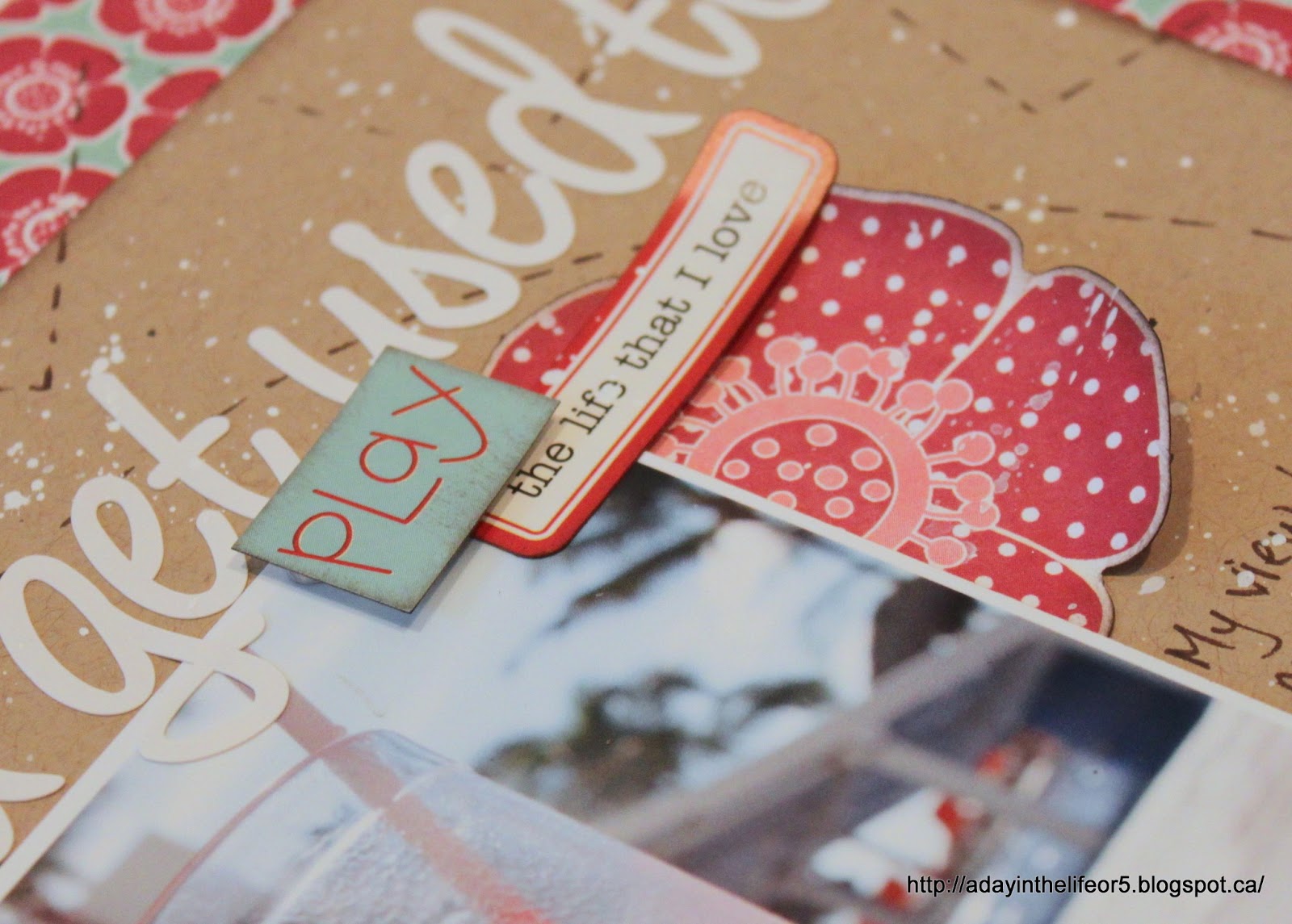 Every now and then a layout needs a long title. Thankfully I’ve got approximately a million alphabet stickers to help me with that! I also had fun finding word stickers in colours and phrases that would work (I’ve maybe got only a half million of those! Hee, hee!!)