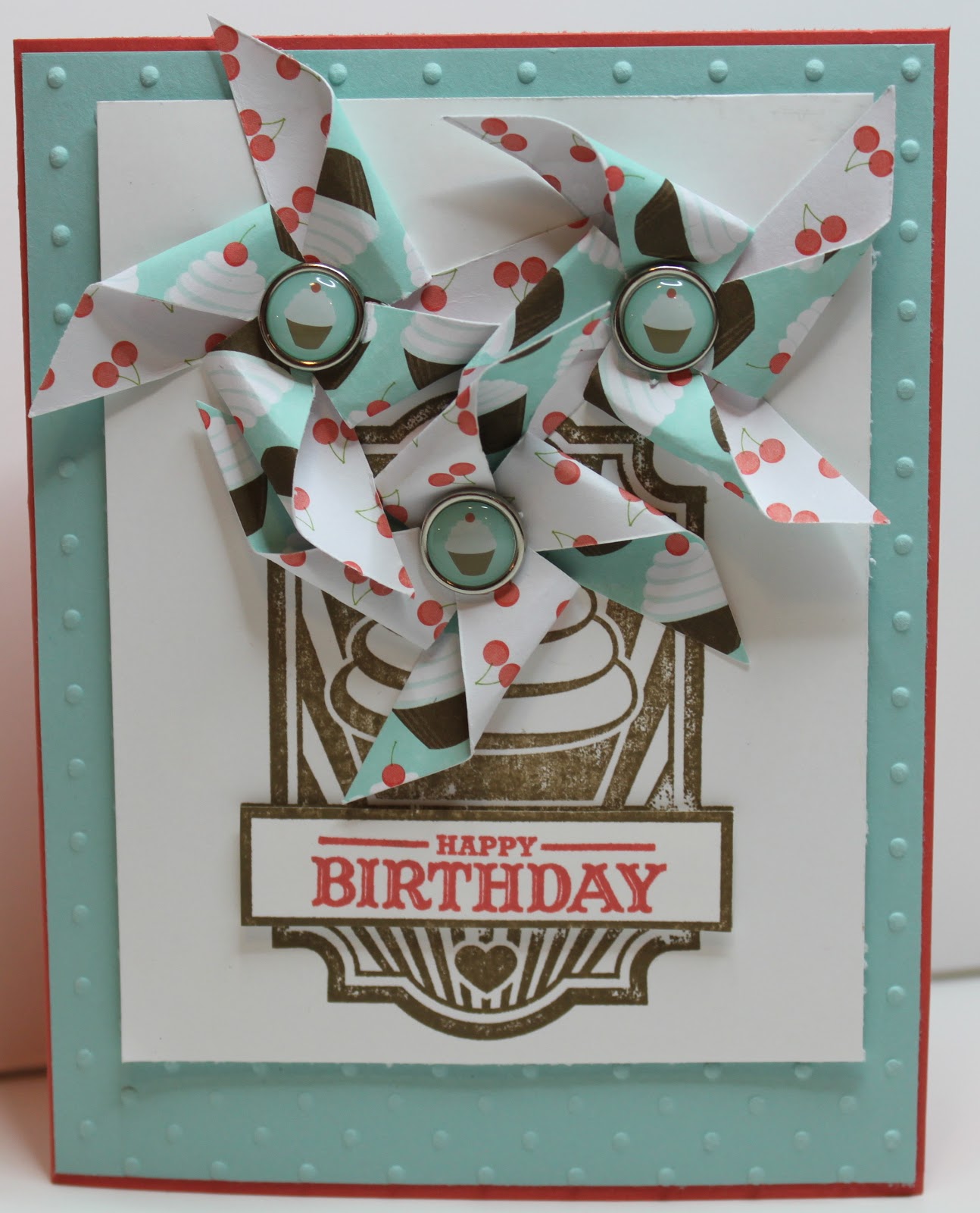Today is my youngest daughter, Christine’s 3rd birthday. She is such a darling little scamp so I decided to make a fun card for her. I think it was using the Big Top Birthday DSP last week that started an obsession with making pin wheels. For whatever reason, I can’t get them out of my mind and keep coming across them in my (too frequent) BLOG surfing sessions!