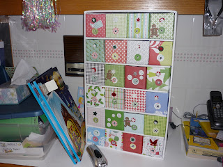 As promised, here are pics of the Advent calendar I’ve been working hard on for the past couple weeks. It didn’t start off as a Challenge entry but BASB is having a challenge that fits it so I’m going to enter it.
