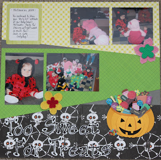 Just a quick post to get my latest scrapping creation submitted before the deadline. I’ll come back after dinner and add details. It’s for Sketchy Thursday’s latest sketch which I instantly fell in love with and can see myself using over and over! This was Marley’s first Hallowe’en party with her baby group. It was quite the experience!! Enjoy!