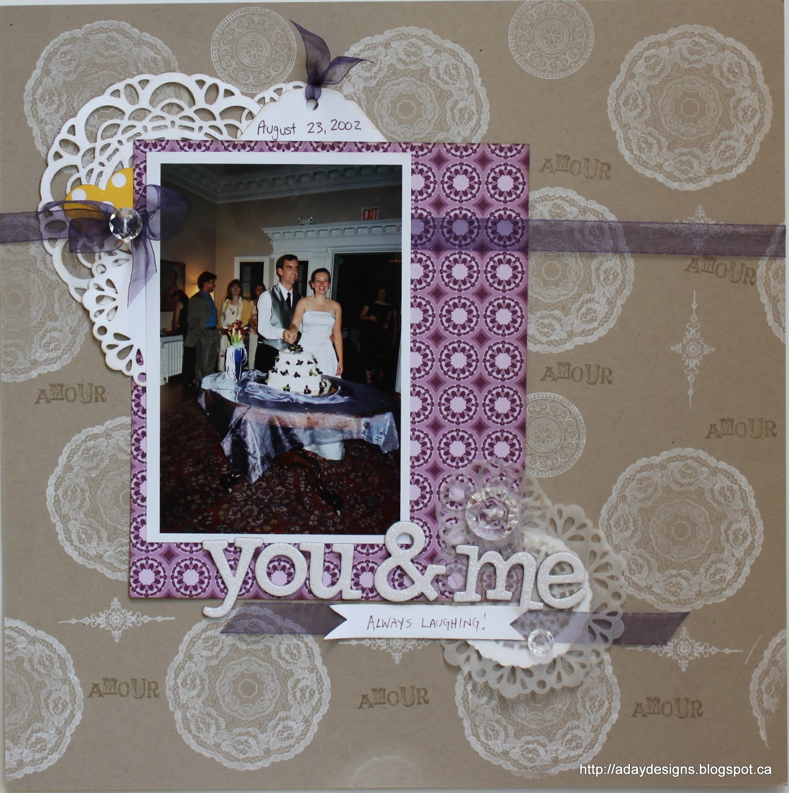 I am really pleased with this layout. I haven’t scrapped any of my wedding pictures yet and now kind of feel inspired … we’ll see! I will for sure be creating more customized background papers though!