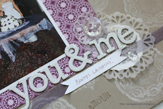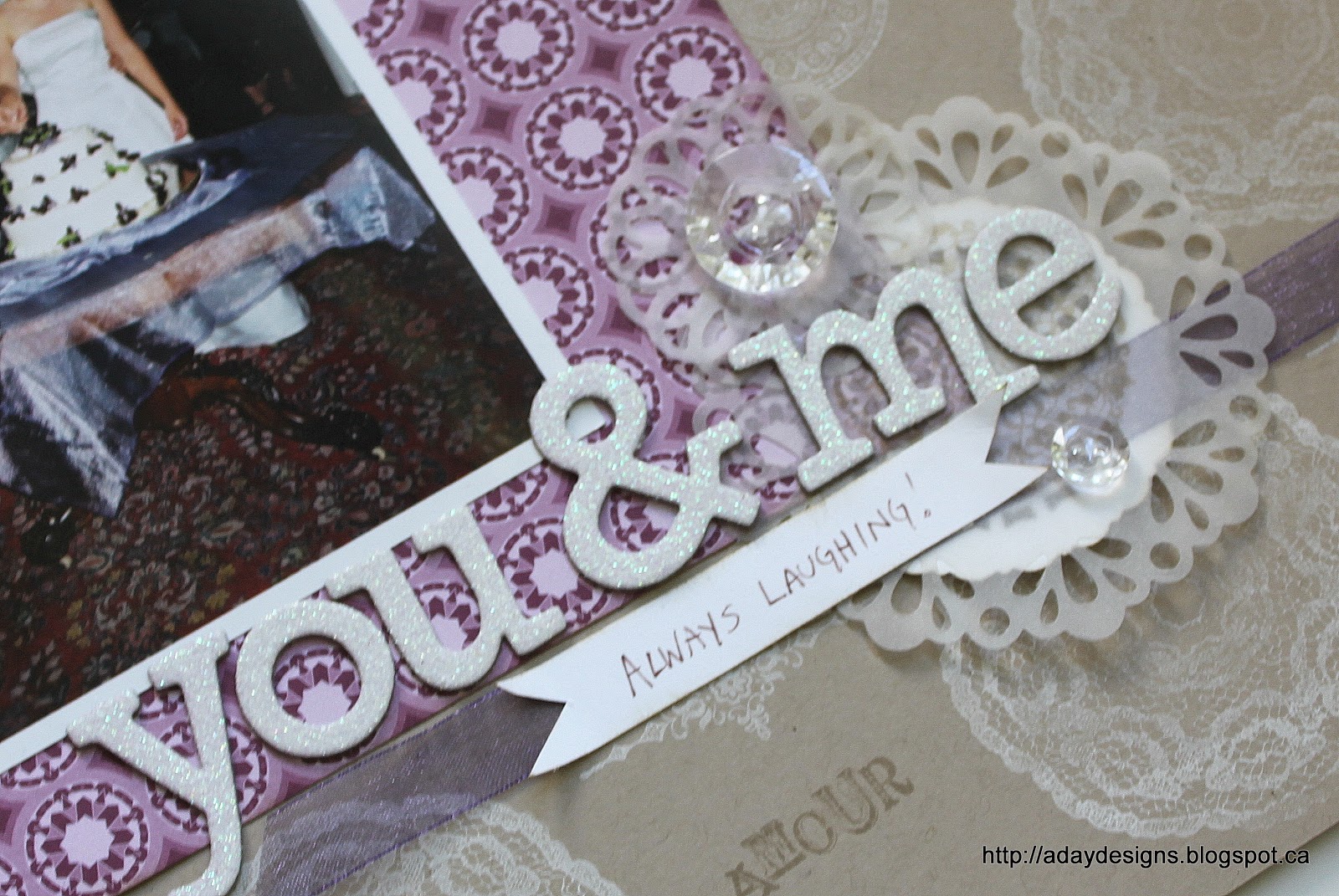 We used accents of purple at our wedding so I looked for some purple patterned paper and found this one in International Bazaar. I knew that I wanted a different title work than my alphabet stamps or my alphabet dies could give me so I had to turn to my non-Stampin’ Up stash for some glittery AC Thickers.