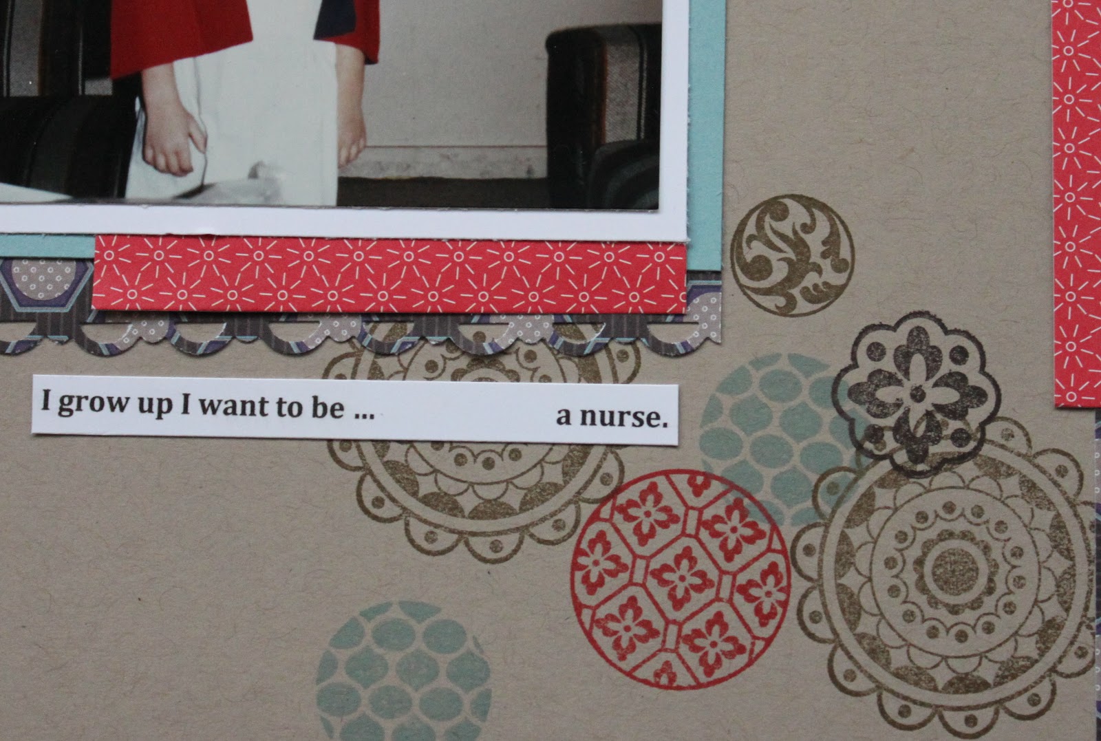 The stamped circles are perfect!! I love the look of them on the kraft!! I love scrapping pics from childhood (: they’re some of the only pics I can find of me these days!!