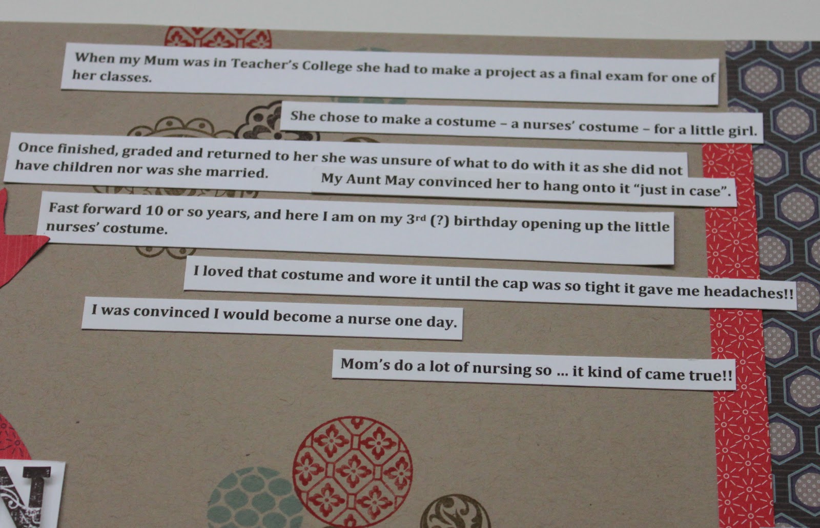 For my journaling I typed out my story into Word then printed it off onto Whisper White card stock. Then it was just a matter of cutting and pasting!