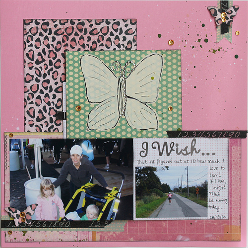 Both of your layouts are lovely and I love how you used the area under the butterfly for more journaling. I am so going to make a layout about what I wish I knew at the age of 18.